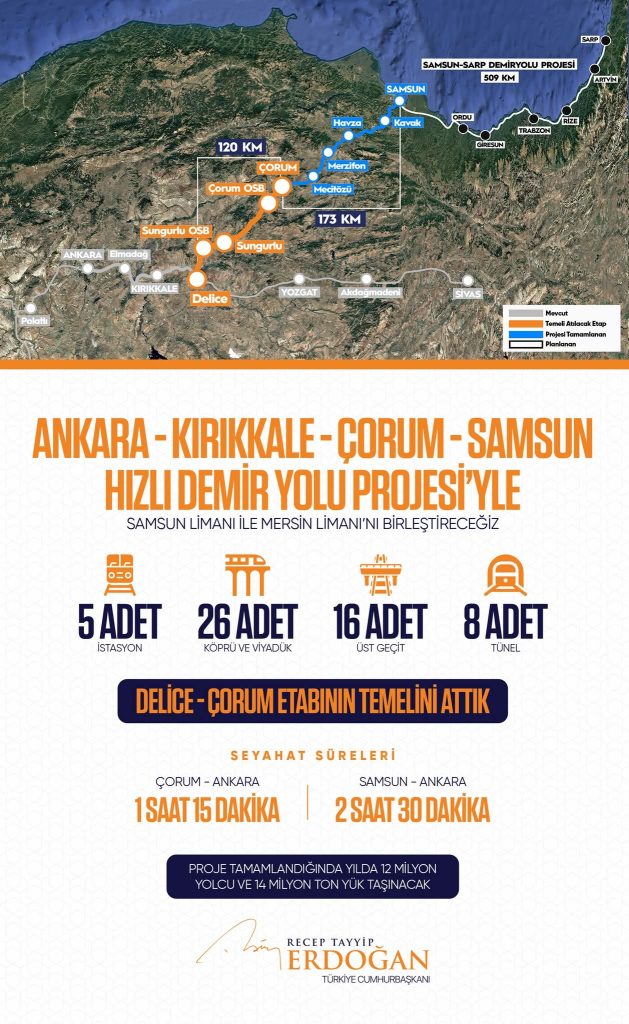 Cumhurbaşkanı Recep Tayyip Erdoğan;Ankara-Kırıkkale-Çorum-Samsun Hızlı Demir Yolu Projesi’nde Delice-Çorum etabının temelini iki gün önce attık