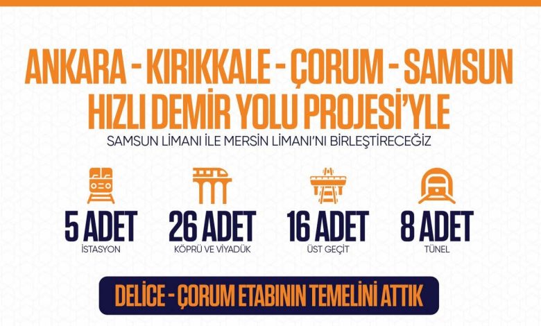 Ankara-Kırıkkale-Çorum-Samsun Hızlı Demir Yolu Projesi’nde Delice-Çorum etabının temelini iki gün önce attık.